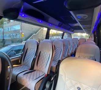 BOOK NOWAmple seating and legroom in the Mercedes 16 Seater make group travel comfortable, relaxed, and enjoyable for every passenger.